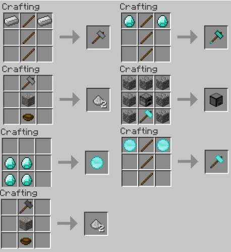 CrushCraft - данный мод для Minecraft 1.7.4, создан для тех кто не любит долго добывать руду, в данном моде добавлено еще больше руды, а так же такая прекрасная вещь для Minecraft как: молоток, который поможет в 2 раза быстрей добывать руду в майнкрафт.